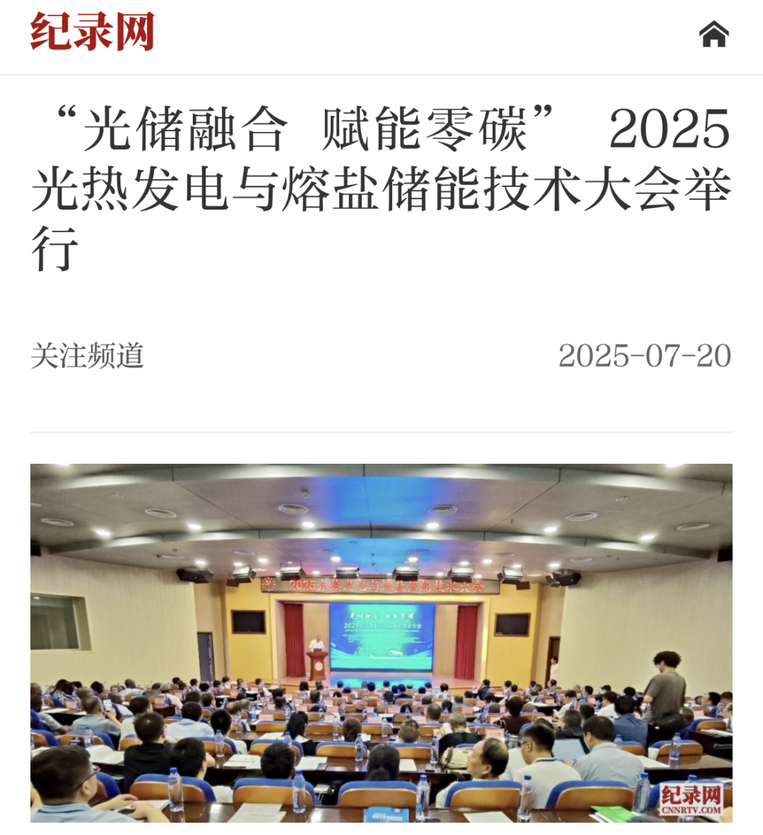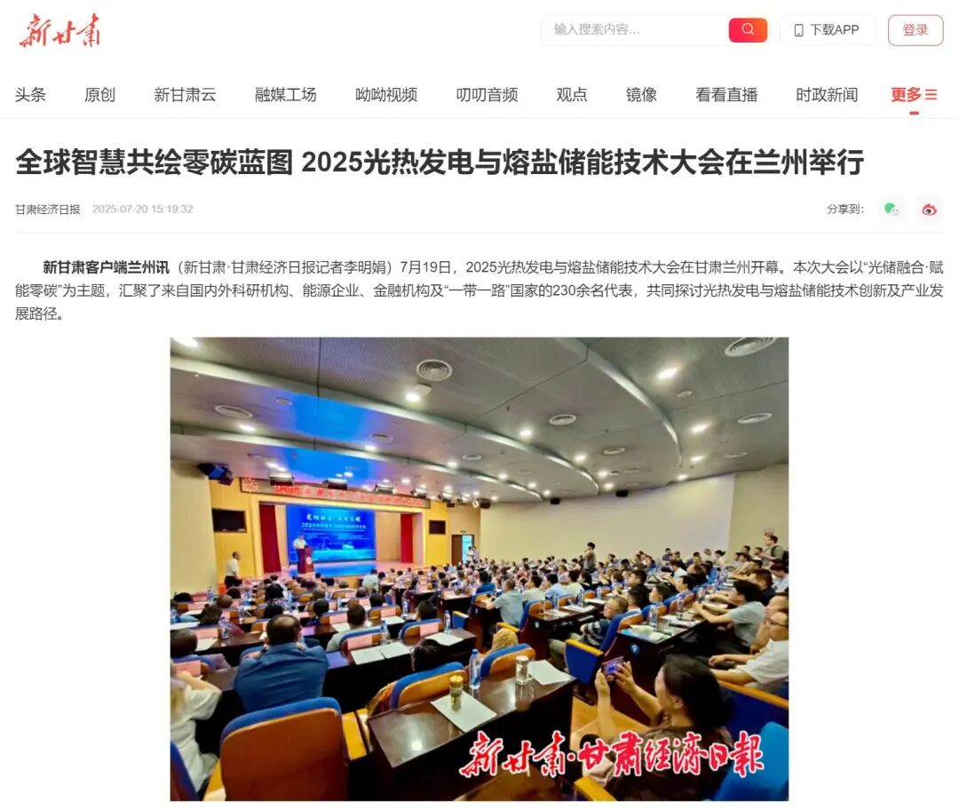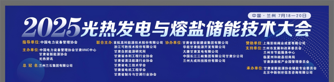2025年7月18日至20日,以“光储融合·赋能零碳”为主题的2025光热发电暨熔盐储能技术大会在甘肃兰州成功举办。本届大会由中国电力设备管理协会指导,甘肃省新能源协会、中国电力设备管理协会甘肃ONC中心、甘肃自然能源研究所、甘肃省清洁能源行业协会、甘肃省水利工程行业协会、甘肃省电工技术学会、甘肃省电机工程学会、甘肃省制冷与空调行业协会及光热资讯联合主办。大会汇聚了全球能源领域的政产学研用多方代表,共同探讨光热发电与熔盐储能技术的创新路径,积极推动“一带一路”沿线国家的能源绿色转型。