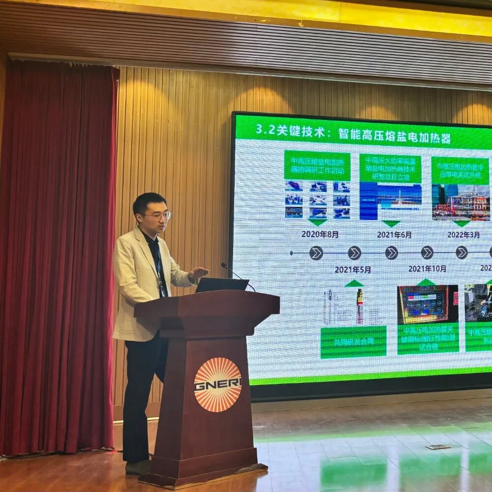 在规模化应用案例方面,中广核新能源邵继新院长探讨了光热发电产业高质量发展路径,为与会者展示央企如何引领行业跨越“规模扩张”向“质量跃升”转型;在塔式技术突破方面,浙江可胜技术宓霄凌副总裁深入解析了塔式电站熔盐储热技术的最新进展,尤其是聚光集热智能化运行系统极具启发性;在系统耦合策略方面,西安热工研究院周科所长探讨了光热与风光电协同调度的模式;在创新方案发布环节,兰州大成科技戚文晔副总经理介绍了线性菲涅尔式光热发电技术。在装备制造突破方面,兰石集团和甘肃省安装集团展示了熔盐泵、储罐等关键设备的国产化成果,详细介绍了数字化推动光热储能规模化发展的案例;在电网接入标准方面,国网甘肃电力公司邵冲副院长从全国及甘肃省光热电站的概况、面临的调整等几方面出发,阐述甘肃省光热产业高质量发展的要点,并提出了光热电站并网技术规范的倡议;在人才培育倡议环节,酒泉职业技术大学马超教授呼吁加强光热领域高技能人才的培养。