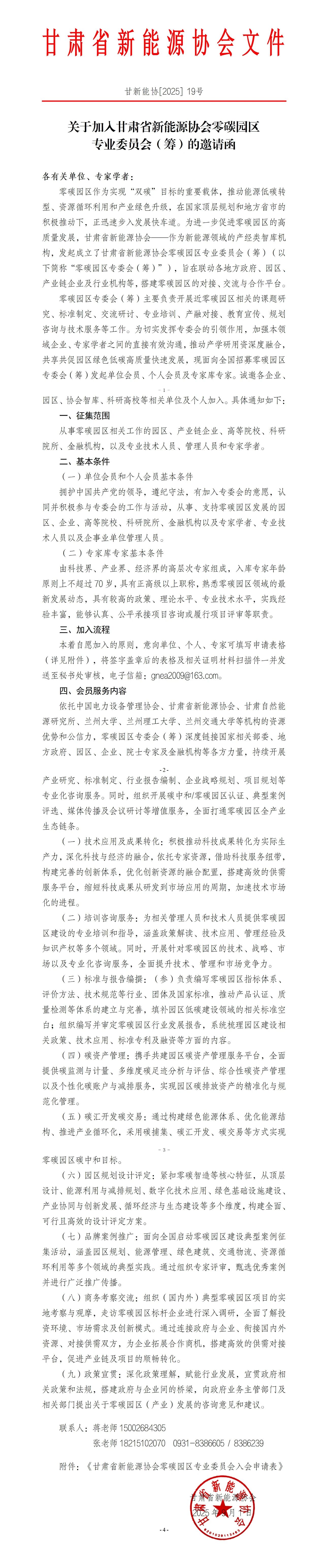 关于加入甘肃省新能源协会零碳园区 专业委员会(筹)的邀请函
