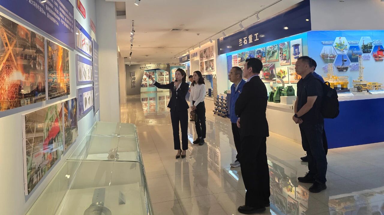兰石集团党委常委、副总经理袁武军,兰石集团新能源事业部总经理叶旻陪同考察团一行,首先参观了兰石集团展览馆,系统地了解兰石集团从传统石油化工装备领域的“国家队”向新能源装备领域的“链主”企业转型的辉煌历程。