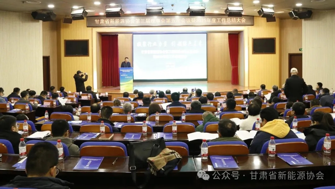 2026年1月23日,甘肃省新能源协会第三届理事会第五次会议暨2025年度工作总结、2026年度工作展望大会在兰州国际太阳能中心隆重召开。本次会议以“总结过往、规划未来、凝聚共识、共促发展”为主题,汇聚了来自政府相关部门、科研院所、协会理事会、监事会、各会员单位及行业智库的百余位代表,共同回顾了甘肃新能源产业在2025年取得的斐然成绩,并围绕“十五五”开局之年的发展路径进行了深度研讨。
